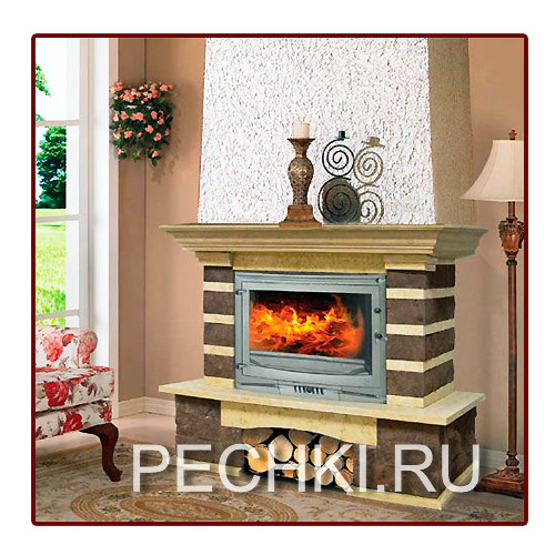 сочетания камня и формы деталей. Предназначена для отделки топок из чугуна или стали закрытого типа (с дверцей, застекленной термостойким стеклом). Каминная облицовка пристенная ANNA