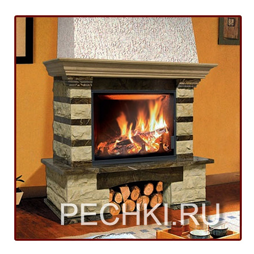 и песчаника. Предназначена для отделки топок из чугуна или стали закрытого типа (с дверцей, застекленной термостойким стеклом). Каминная облицовка пристенная NINA