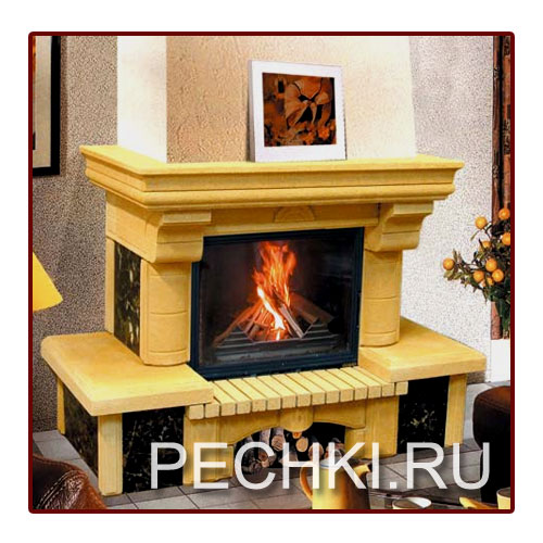 Технические характеристики, под топки серии 800: Размеры каминной облицовки: Глубина - 760 мм Длина - 1560 мм Цвет: желтый или белый Тип: серийная каминная облицовка Производитель: Мета, Россия
