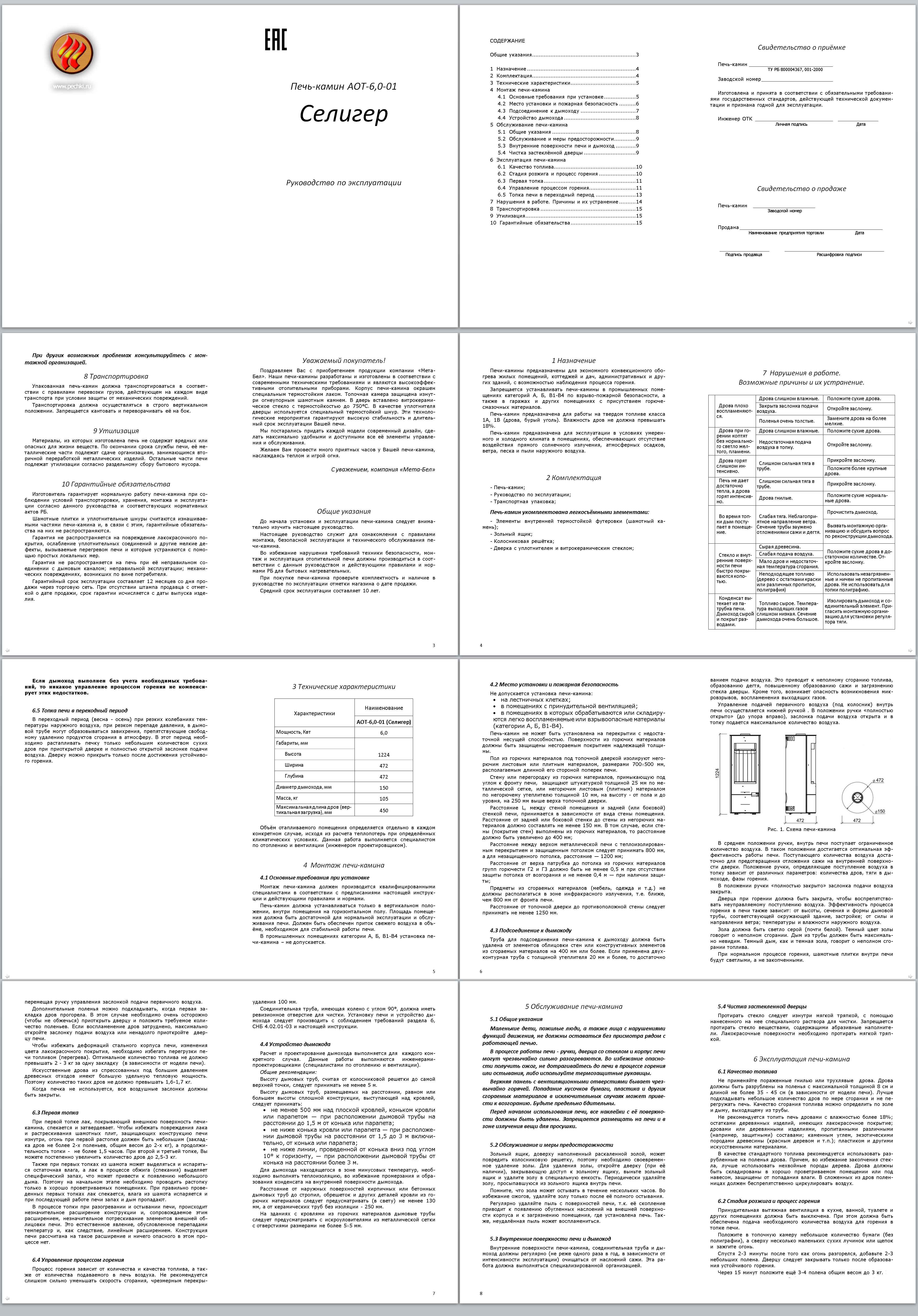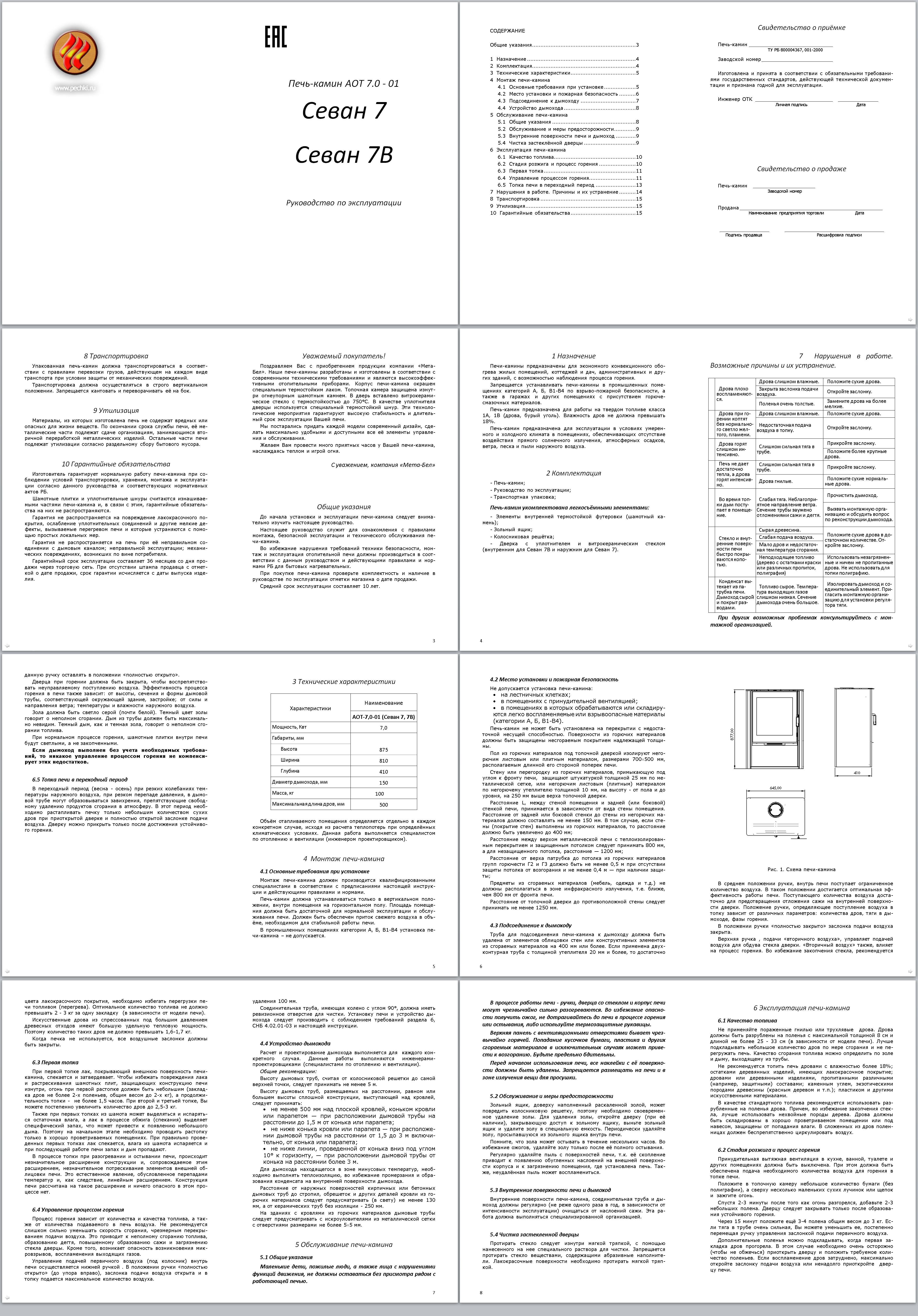 :: инструкция по эксплуатации печей каминов СЕЛИГЕР МЕТАБЕЛ :: схема устройства печей каминов СЕВАН 7В МЕТАБЕЛ