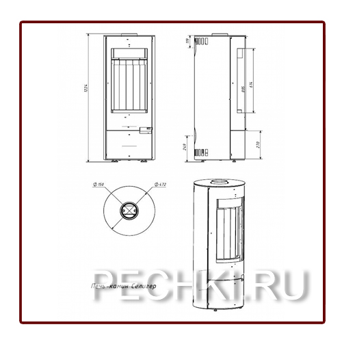 Окружность печи СЕЛИГЕР около 48 см. За счет своей формы и небольшого веса он может быть расположен в любом месте, главное, чтобы оно было прочным. Высота потолков рекомендована не менее 2,5 м.