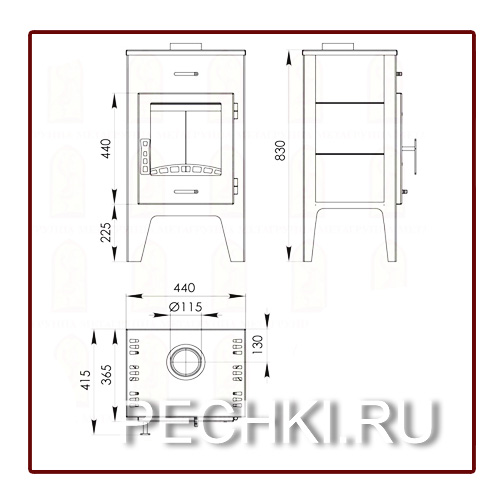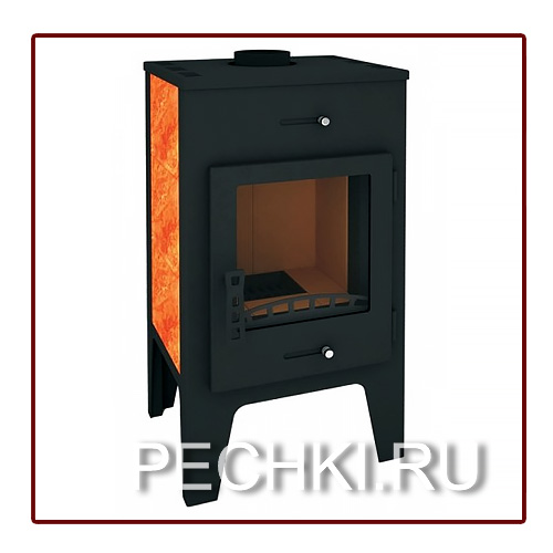 Материалом для производства модели служит листовая сталь, что позволило существенно снизить вес печи по сравнению с чугунными аналогами.