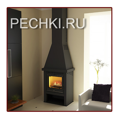 регулируется по высоте, максимальная высота печи 3000 мм. Модель подходит для помещений с высокими потолками или вторым светом.