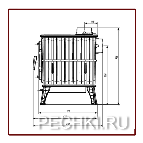 Печь предназначена для бытового использования в трех режимах: естественного горения, длительного горения и тления. Для приготовления пищи удобными будут первых два режима. Последний – способен обогреть помещение установленного объема.