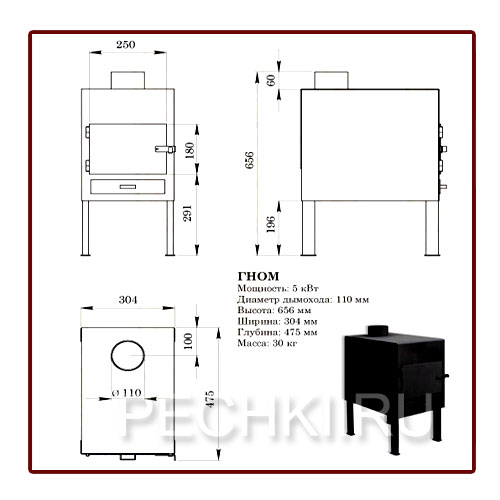 2 :: схема габаритов на печь МЕТА ГНОМ
