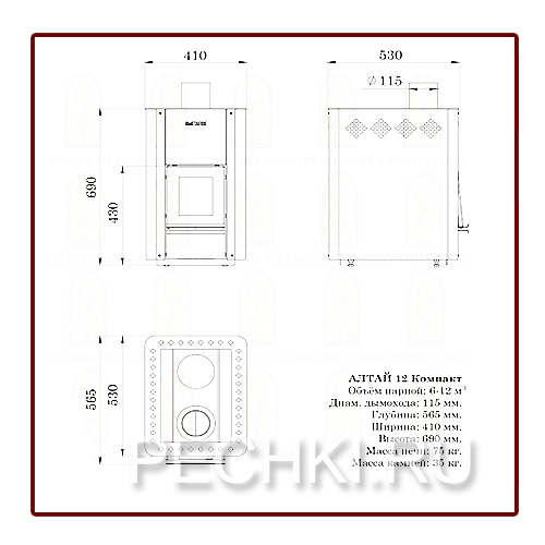 Печь для бани АЛТАЙ 12 компакт ПЕЧИ ДЛЯ БАНИ МЕТА