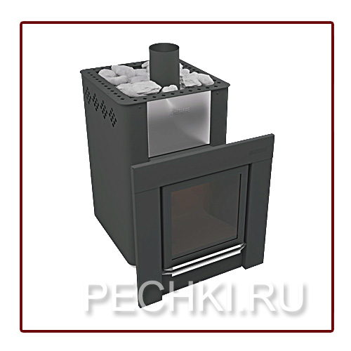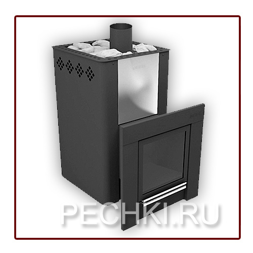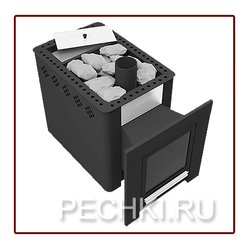 Потрясающе современная и стильная, для ценителей эстетики и функционала. Совершенные линии. Украшение и главное достоинство самых лучших бань. Большой плоский экран. Большое термостойкое стекло позволяют наблюдать за процессом горения под разными углами зрения. Дверца топки имеет универсальное крепление, может устанавливаться как для левого открывания, так и для правого.