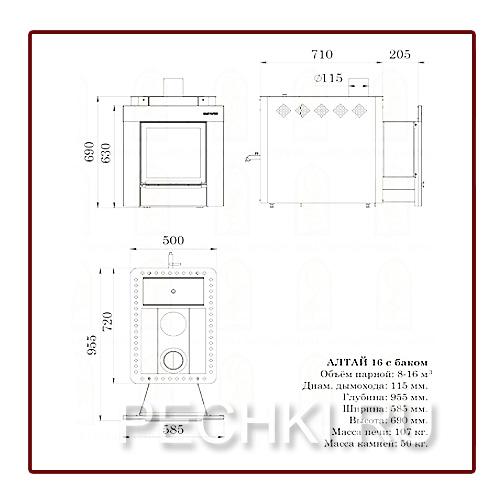 Печь для бани АЛТАЙ 16 с баком ПЕЧИ ДЛЯ БАНИ МЕТА