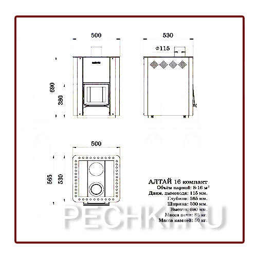 Печь для бани АЛТАЙ 16 компакт ПЕЧИ ДЛЯ БАНИ МЕТА