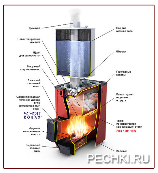 Дровяные печи-каменки для бани ТУНГУСКА предназначены для отопления парилки и смежных помещений бани, нагрева воды и получения пара.