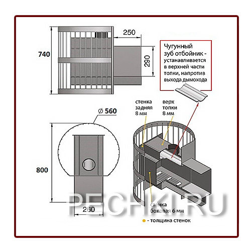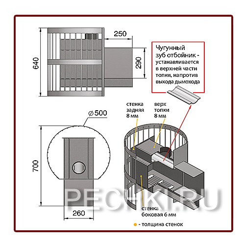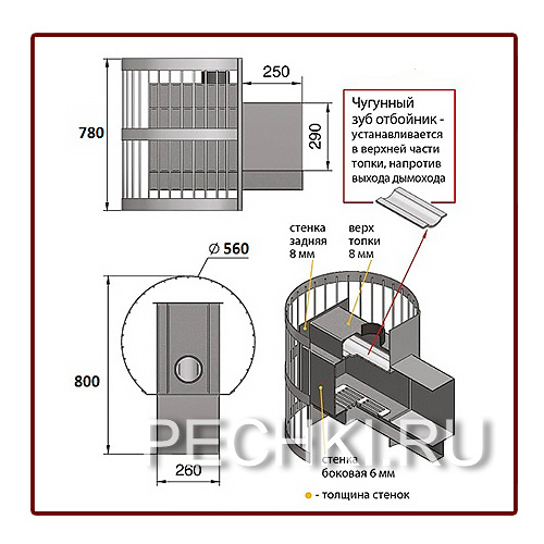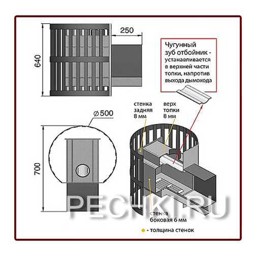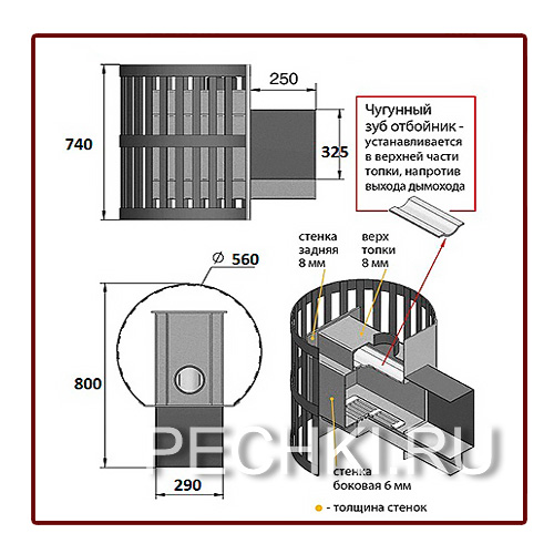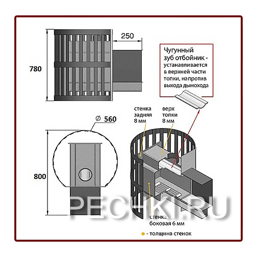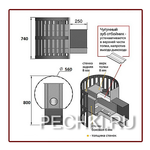 Толщина закрытой каменки