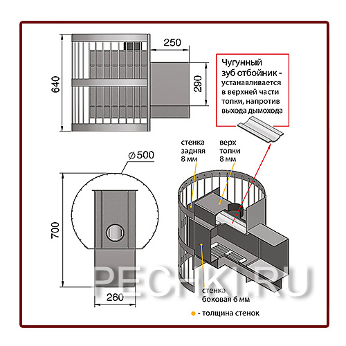 Толщина топки (мм): 8 Топочный тоннель: с выносом