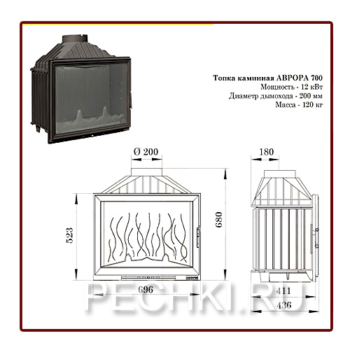 | Закрытая каминная топка АВРОРА мощностью 10 кВт обогреет помещение до 100 кв.м, в зависимости от облицовки.