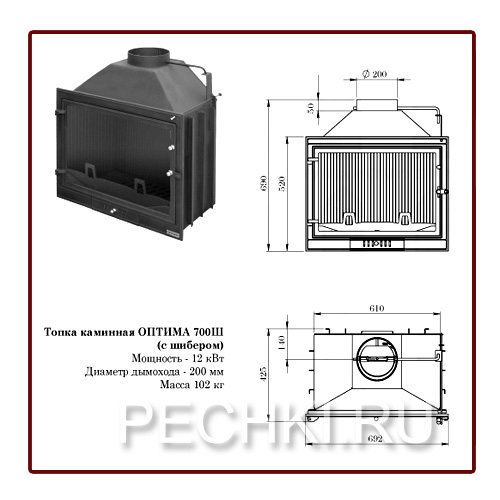 Уникальная Российско-Французская каминная топка ОПТИМА с шибером. Двойной контур топочной камеры. Дожиг вторичных газов. Длительное горение.